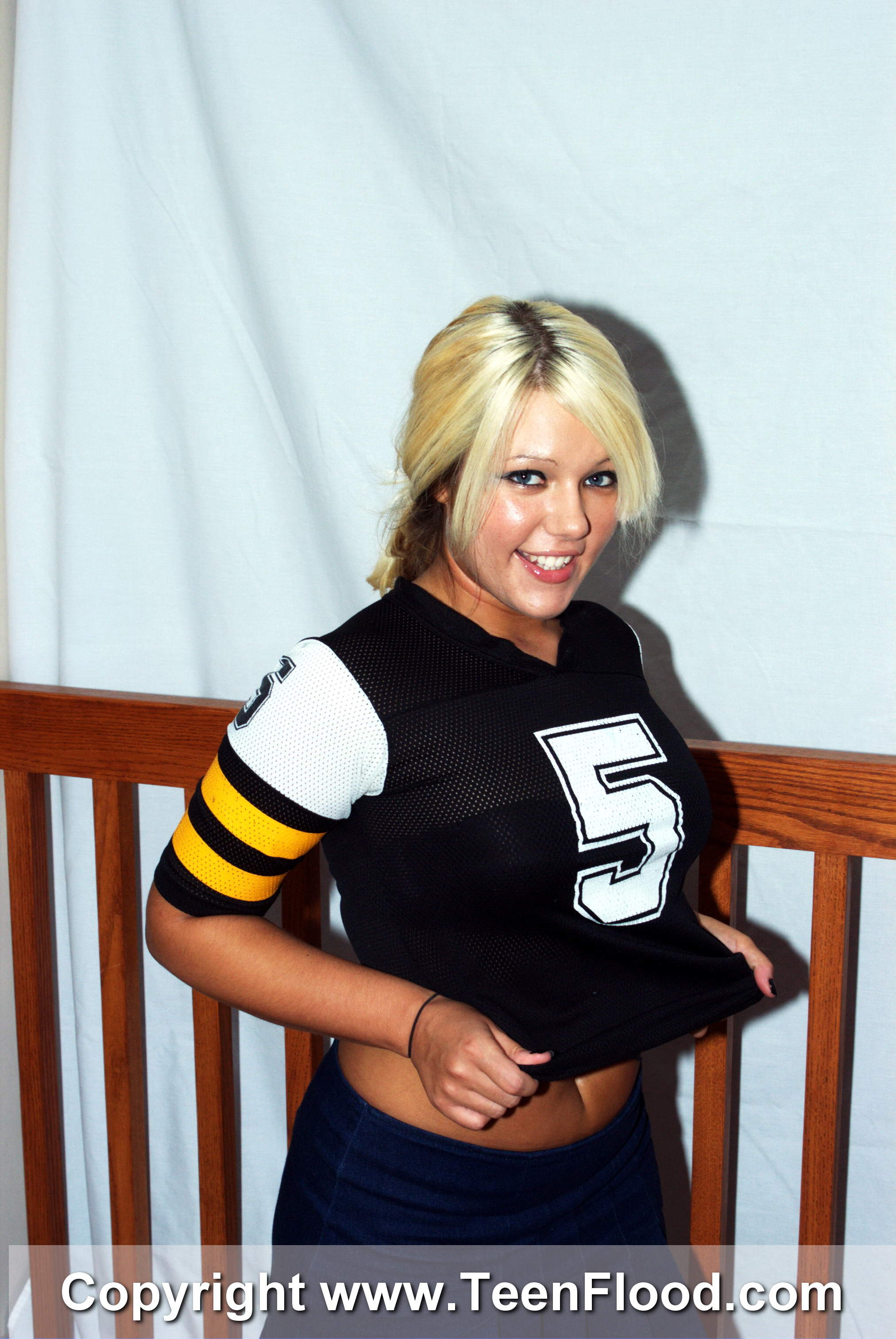 Our teen cheerleader Kittie is not just a pretty face, she is also a hot body. She has B cup boobs, a nice hand full that any man would be glad to get their hands around. She keeps her little pussy shaved and hairless. When she stands naked it is one great sight to behold. She has a nice fine ass and I should add that she is quite flexible. Good to be a cheerleader.